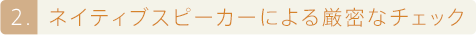 当社の一番の強みは、各言語のネイティブスピーカーによる厳密なチェック体制。必ず2名以上で校閲作業を行うことで、訳抜けや誤植を徹底的に防ぎます。 また、各地域の文化的背景や地域の特色を踏まえた言い回しを選択することで、より質の高い翻訳サービスをご提供いたします。